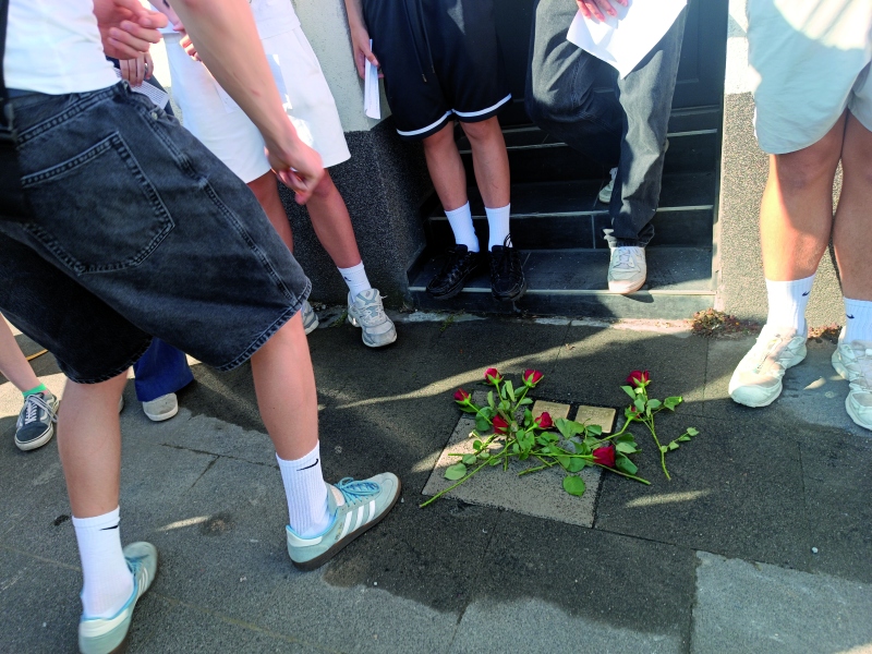 Am Ende der Gedenkstunde legte jeder der Schülerinnen und Schüler eine Rose um die beiden Stolpersteine – eine bewegende Geste von jungen Leuten, die sich ihrer Verantwortung für die Vergangenheit und Zukunft bewusst geworden sind.
